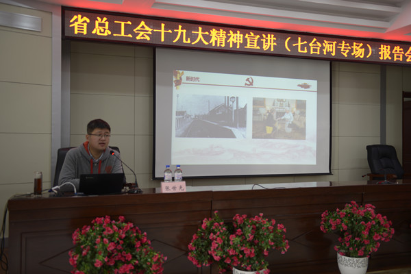 11月13日,省总工会十九大精神宣讲报告会在365bet在线15楼会议室举行,市人大常委会副主任、总工会主席富晓东与全市各级工会代表120余人一道聆听了整场报告会。 报告会特邀《工人日报》驻黑龙江记者站站长、主任记者张世光宣讲。张世光是《工人日报》仅有的两名党的十九大参会记者之一,参与采编了多篇大会报道,以参会记者的独特角度,从新时代、新理念、新使命三个方面对十九大精神进行宣讲。宣讲内容脉络清晰、深入浅出、旁征博引、通俗易懂,引起了工会干部的强烈反响和深度共鸣,会场不时响起热烈的掌声。 会议由市总工会副主席倪秀兰主持,她要求全市各级工会干部职工要继续深入思考,认真领会,学有所悟,学有所获。要充分认识党的十九大的重大意义,切实把思想和行动统一到十九大精神上来;要切实提高政治站位,深刻领会十九大的精神实质;要坚决落实省总工会的决策部署,迅速掀起学习宣传贯彻十九大精神的热潮,确保党的十九大精神在我市工会系统中落地生根,要学深悟透、融会贯通,学以致用、学以促用,切实把党的十九大精神落实到工会工作的各方面,强化服务职工职能,不负重托、不辱使命,为推动我市经济社会转型发展建功立业。 市总工会副处级以上领导及机关全体干部职工参加了报告会。(王淑堂)  | | 市人大常委会副主任、总工会主席富晓东参加报告会 |  | | 张世光以参会记者的独特角度宣讲十九大精神 |  | | 市总工会副主席倪秀兰主持会议 |  | | 参会的各级工会干部及职工代表 | | |